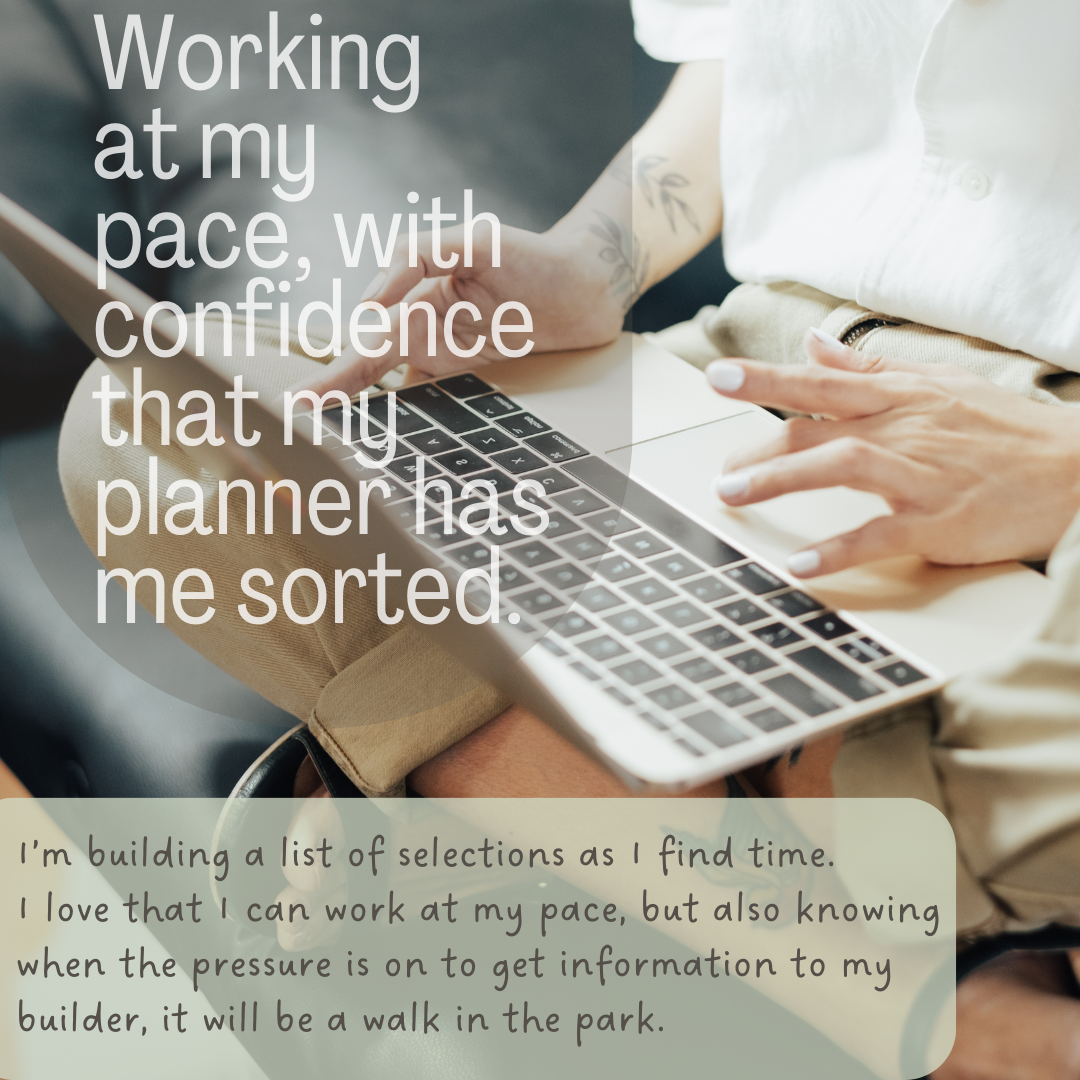 A DIY guided schedule that steps you through your new build selections, your reno selections or a place to record your ponderings of your future build.